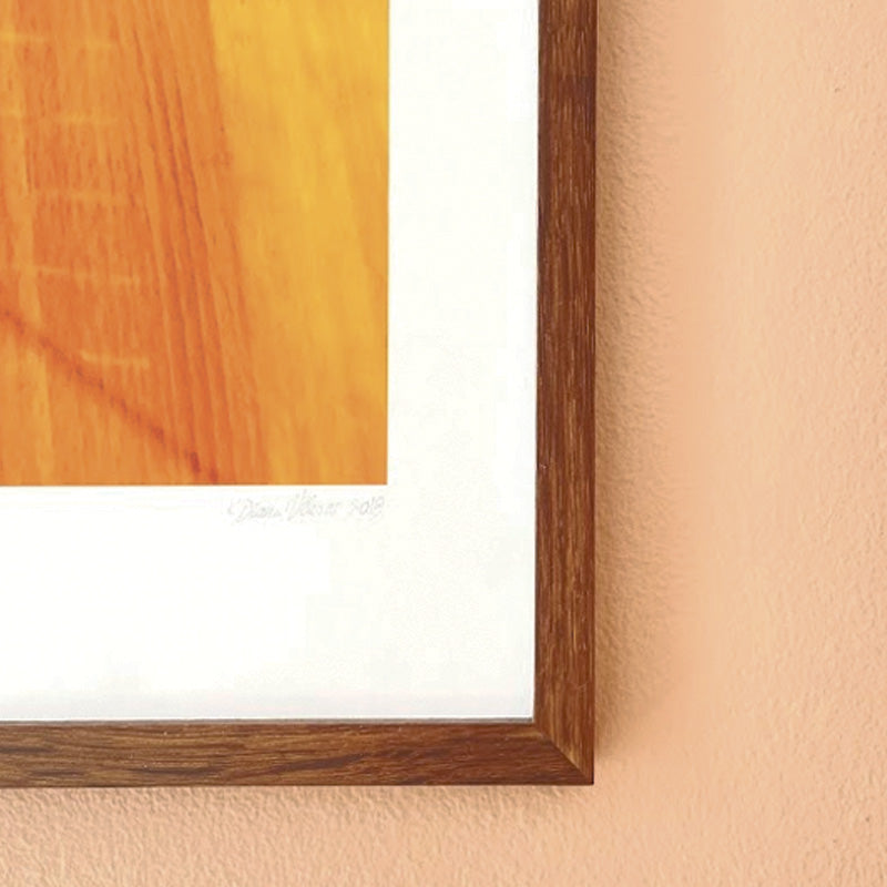 Vores massive rammer er resultatet af håndværk i højeste kvalitet. Hver ramme bliver samlet med synlige snedkersamlinger, som både giver et smukt udtryk og ekstra holdbarhed. På bagsiden bruger vi vores unikke sommerfuglsamling, der sikrer, at rammerne forbliver stabile gennem hele livet.