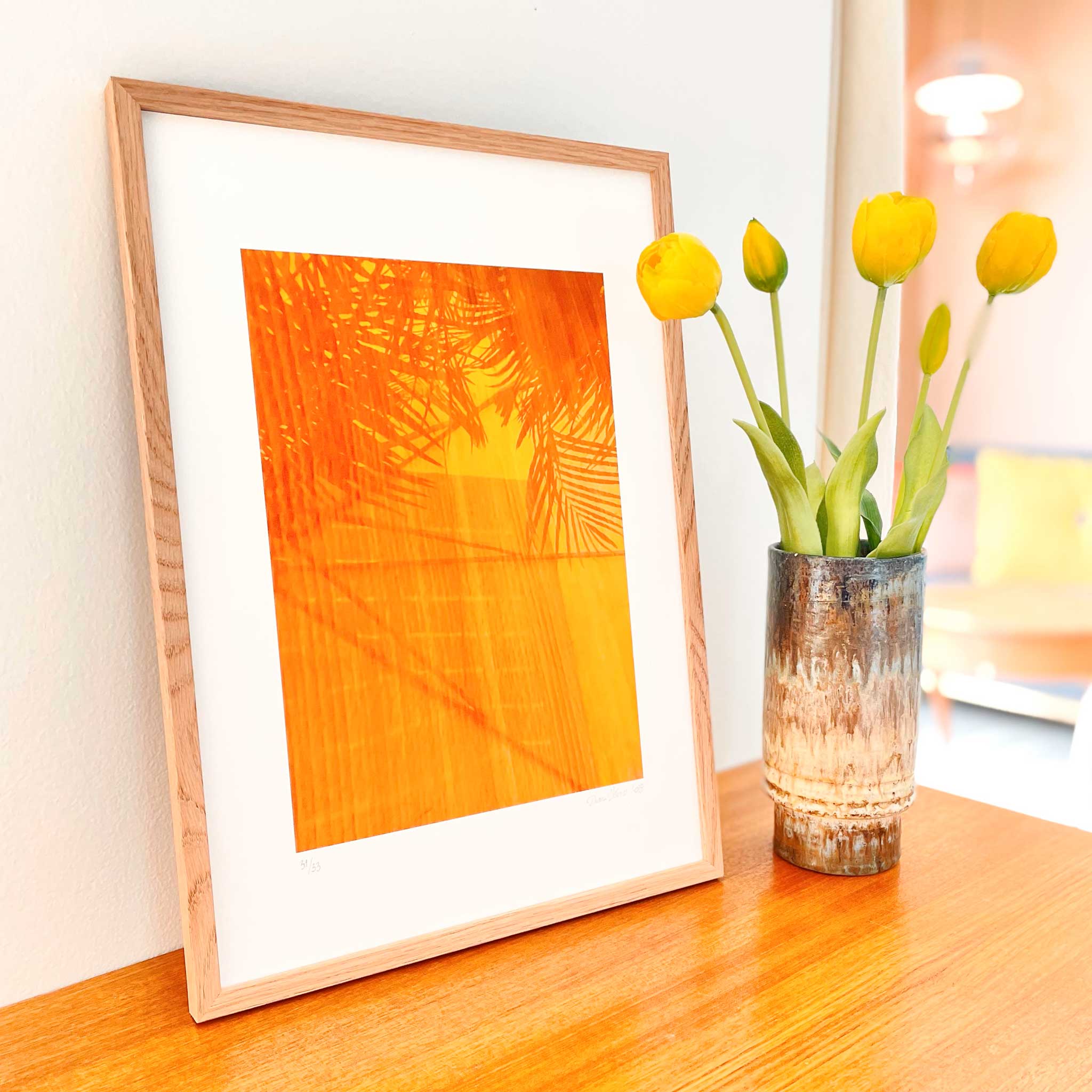 Vi olierer alle rammer i hånden for at fremhæve træets naturlige struktur og beskytte mod slitage. Olien forlænger levetiden og holder rammen smuk i mange år.