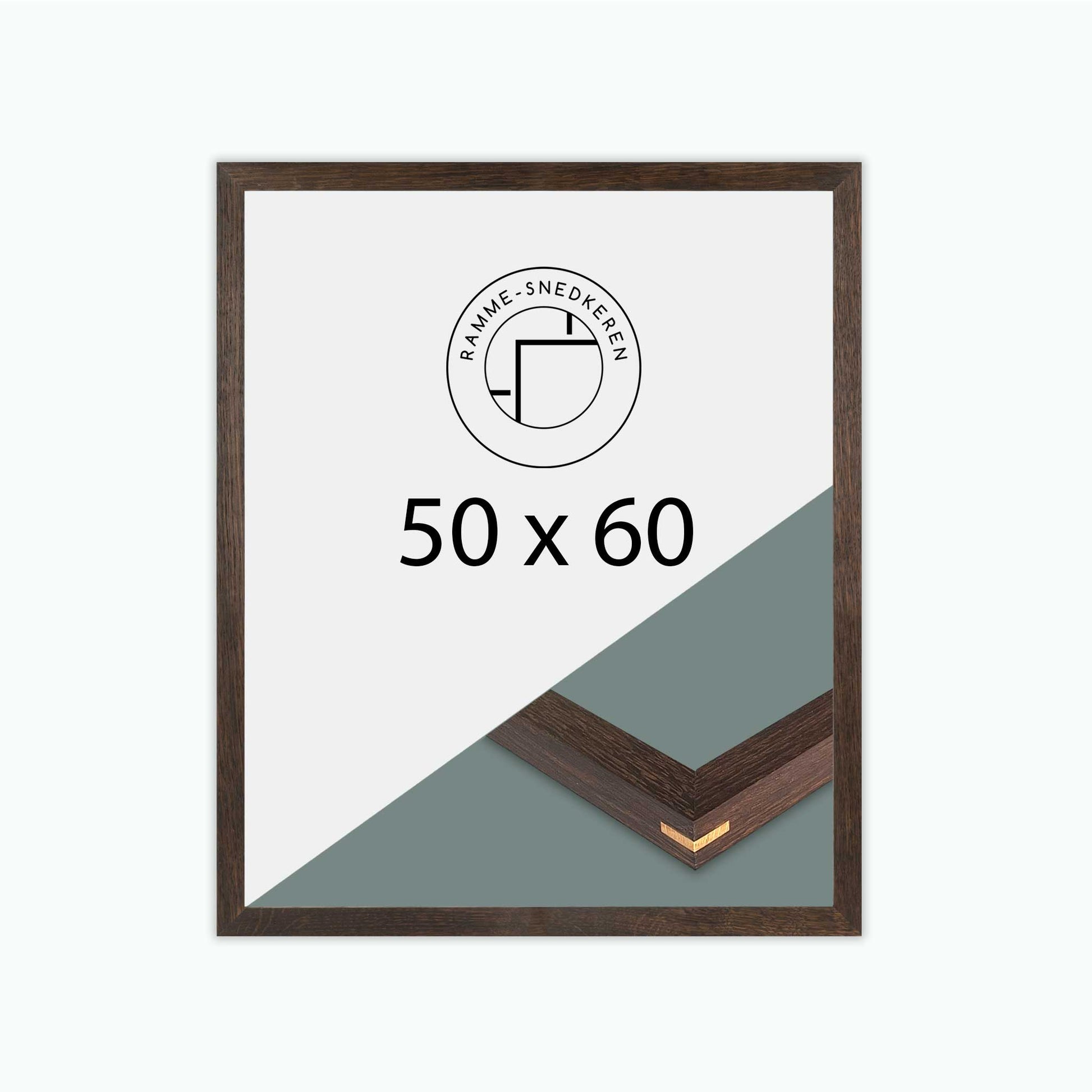 Snedkerramme mørk eg – 50x60 – Bred m. snedkersamling – Ægte glas – Olie/voksbehandlet – Håndlavet i Danmark